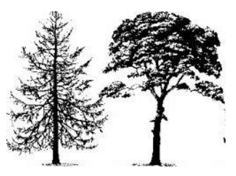 Denneboom mouk loariks belaggelk, omreden dij zien nalen ien haars valen lait en hai mooi gruin bleef. Dou winter kwam, trok ter n dikke bui snij veurbie. Ien dikke loagen vil snij omdeel en dat op dikke takken mit gruine nalen van denneboom. t Duurde nait laang of takken van denneboom broken òf en boom ging der aan dood. Snij vil ook op takken van loariks mor dij wazzen ja koal en snij vil der zo weer òf en dat omdeel op grond. Loariks leefde gewoon wieder en bleef mor wazen.