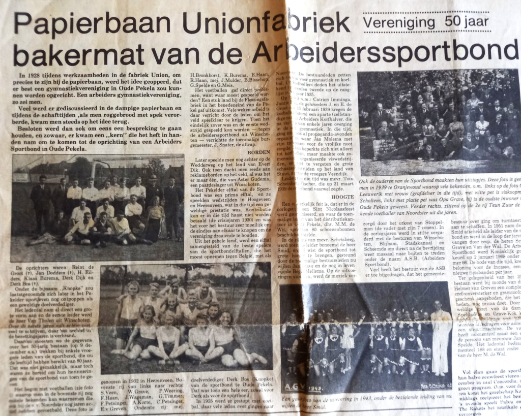 Hou wìns en realiteit te combineren binnen, is mie nait dudelk en bie thoeskomst hebben wie n bult te beproaten. As kinder van gimmestiekers, mien pa en schoonmoe mit n körfbalverleden, wuiren wie automoatisch lid van gimmestiekverainen. In dij tied, 50- en 60-er joaren haarst so-wie-so al drij verainens in Olde Pekel. Rood-wit, veur d’aarbaaiders, swaart-wit, veur dij t wat beter haren en noar k mie herinnern kin, geel-wit, veur d’kinder, dij op n christelke evenwichtsbaalke balanceren mozzen. Gimmestiek mos.