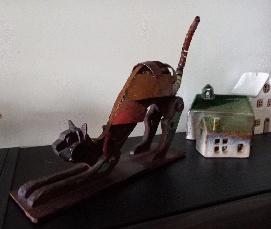 Dat onze iezern katte, n kunststok, n pronkjewail vinden wiezulf, in d’eerste moand noa t overbrengen nait boven wotter kwam en ook de moanden doarnoa, heb k miezulf aanrekend. Tot moandagmörgen zo om en noabie haalf 12. Dou vloog deksel van t vat vol frustroatsies.