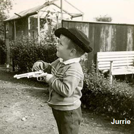 As k in kraande lees over Midwolle, schoft der votdoadelk n loa vol herinnerns open. Ploatjes glieden ale kaanten op, paardij valen op grond, anern liggen onnersteboven, op kop. In dat verhoal in t Dagblad komt noam veur van Jurrie Diekhoes (as Jozefregisseur) en dìn zai k in ainen poar kloare, hoarschaarpe foto’s veur mie. Lutje jong, verklaid as ‘cowboy’, houd op, pistool in haand. Of mit n klaid aan en schounen van zien moeke. Aaltied mit n laag op zien snoet. Allenneg, of mit zien grode zus Afiena, of zien bruier Albert. Zel loater wel n Appie worden weden… Din vroag je joe of, hou dat kin, dingen dij meer as viefteg joar leden gewoon gebeurden, dat dij zo helder op joen netvlies pronken. Midwolle, stee woar k geboren bin, opgruide. Woar k noar schoule ging, haalve dörp deur, baange veur koksjoanen en Sjors Meijer, dij joe in tok stoppen wol… Mit grode ogen bie open deure van Blaauw zien Fordgarage noar t waark keek van monteurs, noar d’auto’s en trekkers, nije Fordson. Doar waarkte Lammert Diekhoes ook, pa van Jurrie. Dij femilie zat doch al mit neuze bovenop auto’s. Lammert Diekhoes zien vraauw was aine van Joke Smit, van Meerland, dij doar mit zien vrachtwoagens begon, loater noar t loug verhoesde, aan Hoofdweg, stoefbie t postketoor. Dou wazzen wie al verhoesd van Woningbaauwloane noar Nijsiesoord. Lammert en Annie werden onze buren, wie op 59, zai op 61. Wie niks, zai griffemeerd, mor wie konnen goud mit mekoar, ook al zong buurvraauw Annie psaalms en mien moeke rooie verskes as “Morgenrood” en “Op socialisten sluit de rijen”. Elk zien aigen geleuf. Eerst wer Afiena op wereld zet, poar joar loater Albert, n weke noa mien joardag. Aaltied was der dìn ‘arretjescake’, bakt van meelkoekjes en sokkeloa.