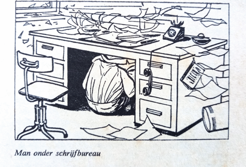 Striptaikenoar het der à la Piet Kuhn n mooi taikenkje ‘man onder bero’ bie moakt.