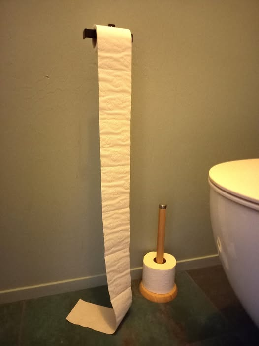De wcrol en den benoam, hou de rol op de rollenholder mout en vervolgens aan de mure. Noader verkloard. Ik vind dat t lözze ìndje pepier aan de mure hangen mout. Arineke hangt hom persies aansom, mit t lözze dail bovenop. Mien probleem is, zo’n rol kin deur n onverwachtse bewegen in t lutje, schieteg hokje, makkelk aan de rol goan en wel ain keer bezeg west is om t pepier bie mekoar te haarken en t vannijs weer terogge te rollen op t ronde kertonnetje, wil dat t laifst gain twijde moal mitmoaken.