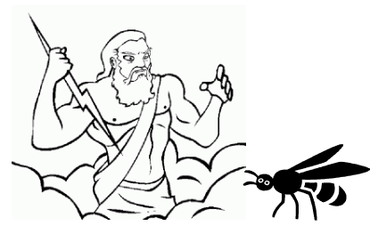 Dat verzuik zat Jupiter mit ien moag en hai werd der wat vergrèld om, omreden hai mog minsen. Mor weep heur verzuik waaigern kon e ook nait, omreden goden holden aaid woord . Doarom bedocht hai t volgende en zee tegen weep: “ Wat ofstoe wils zel k die geven mor t kin ten koste goan van dien aigen levent. Astoe ain mit angel steks, zel dij ien steekwond achterblieven en den gaistoe der zulf ook aan, omreden doe bis dien angel den kwiet.”